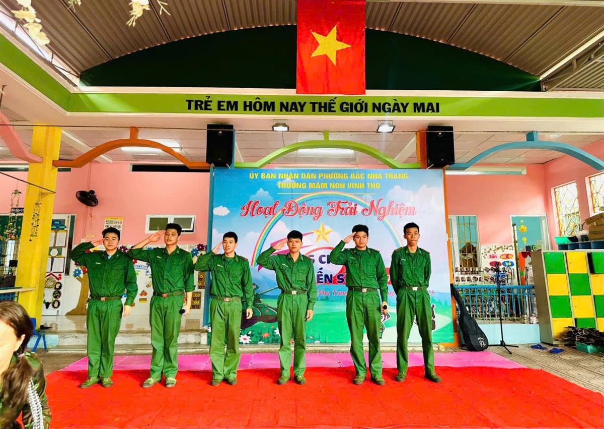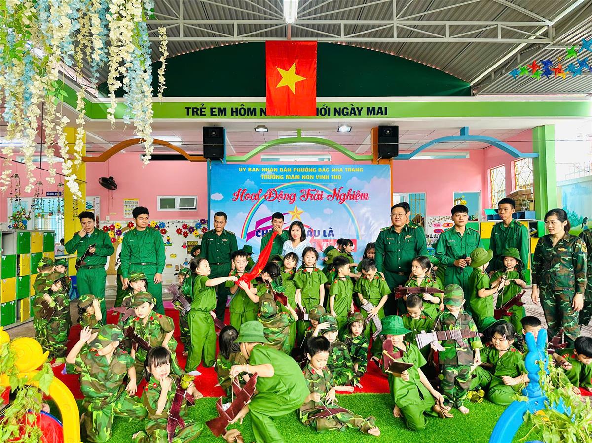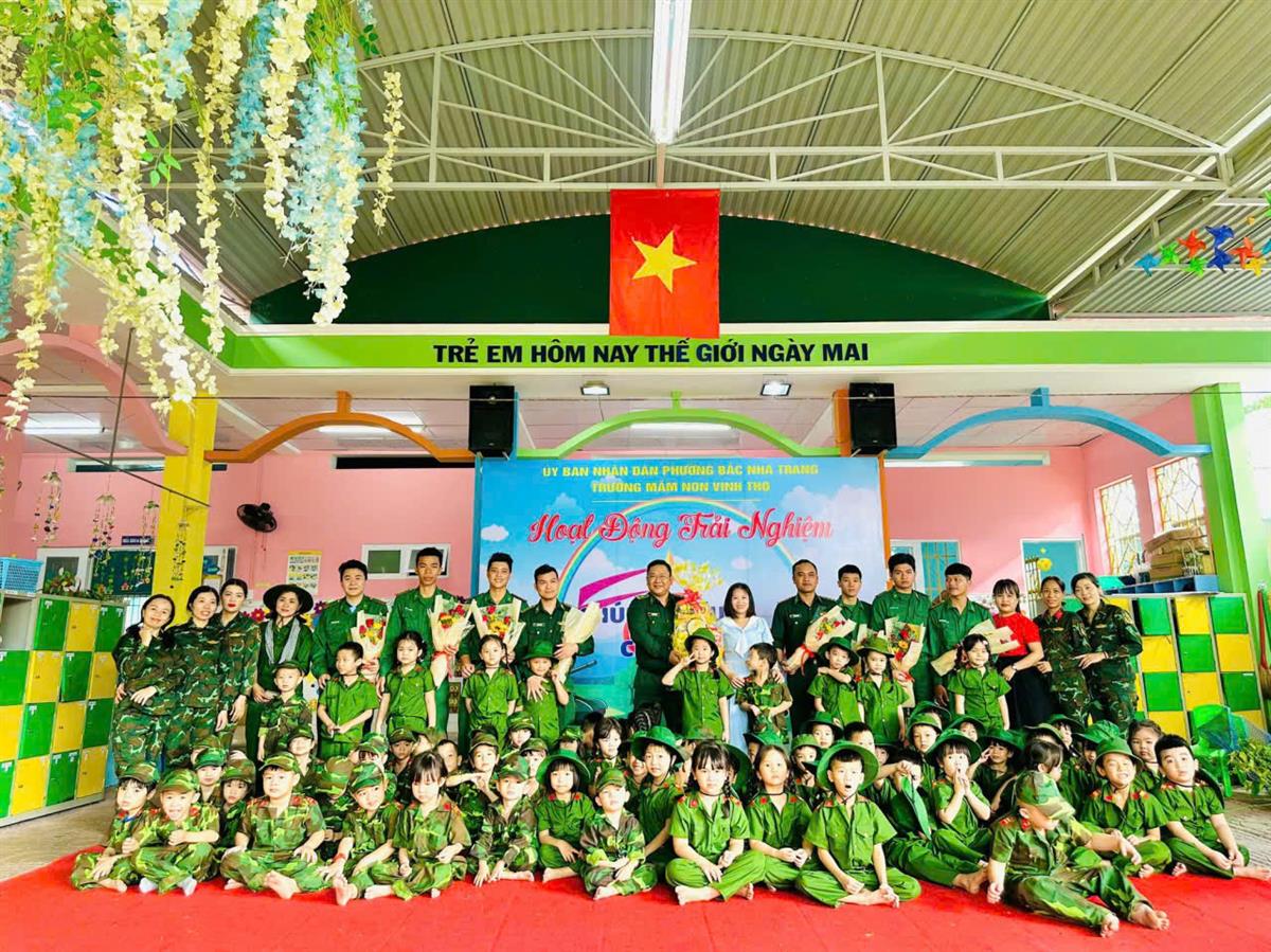 Hòa trong không khí phấn khởi, tự hào của toàn Đảng, toàn Dân và toàn Quân ta hướng tới kỷ niệm 81 năm Ngày thành lập Quân đội Nhân dân Việt Nam (22/12/1944 – 22/12/2025) và Ngày hội Quốc phòng toàn dân, hôm nay, cô và trò Trường Mầm non Vĩnh Thọ vô cùng vinh dự và vui mừng được đón tiếp các chú bộ đội Đồn Biên phòng Cầu Bóng đến tham dự và cùng chung vui với các cháu trong Chương trình “Chúng cháu là Chiến sĩ tí hon” – năm học 2025–2026 do nhà trường tổ chức.