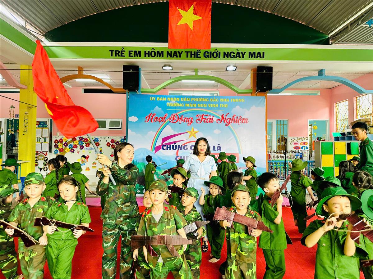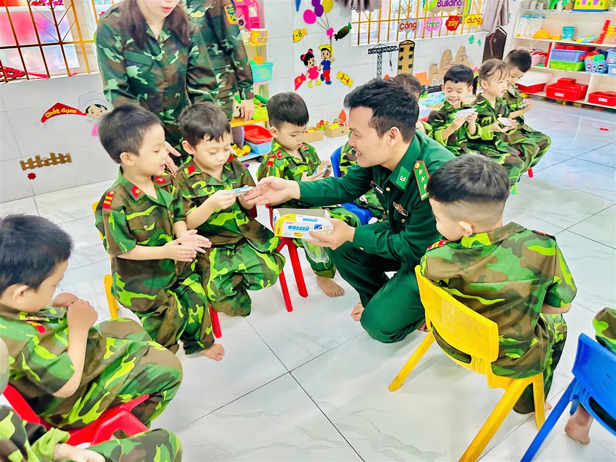 Thông qua chương trình, các cháu còn được giáo dục về ý nghĩa lịch sử của ngày 22/12 – Ngày thành lập Quân đội Nhân dân Việt Nam, từ đó nuôi dưỡng trong lòng trẻ niềm tự hào, lòng biết ơn và tình yêu quê hương đất nước ngay từ những năm tháng đầu đời.