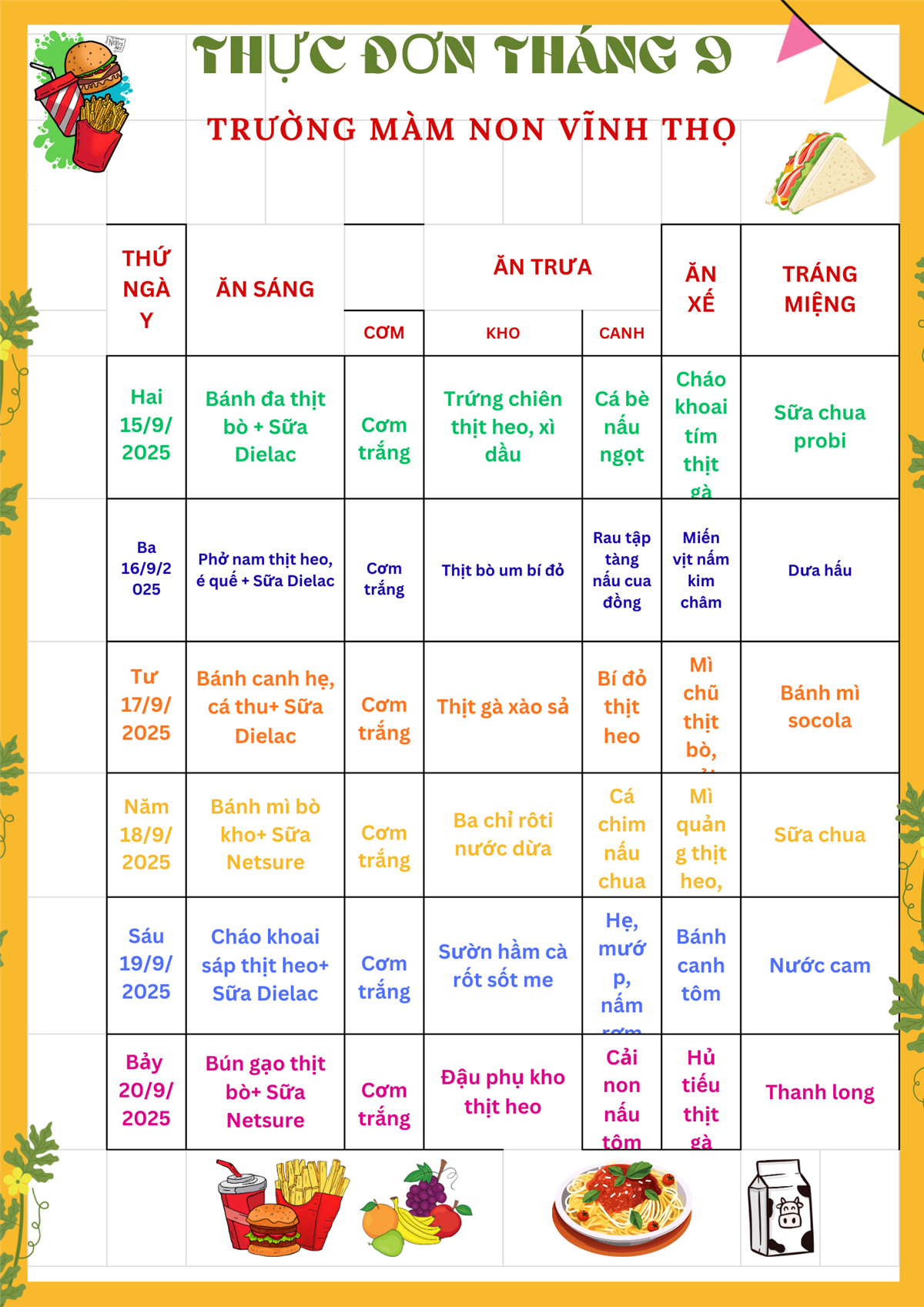 THỰC ĐƠN THÁNG 9/2025