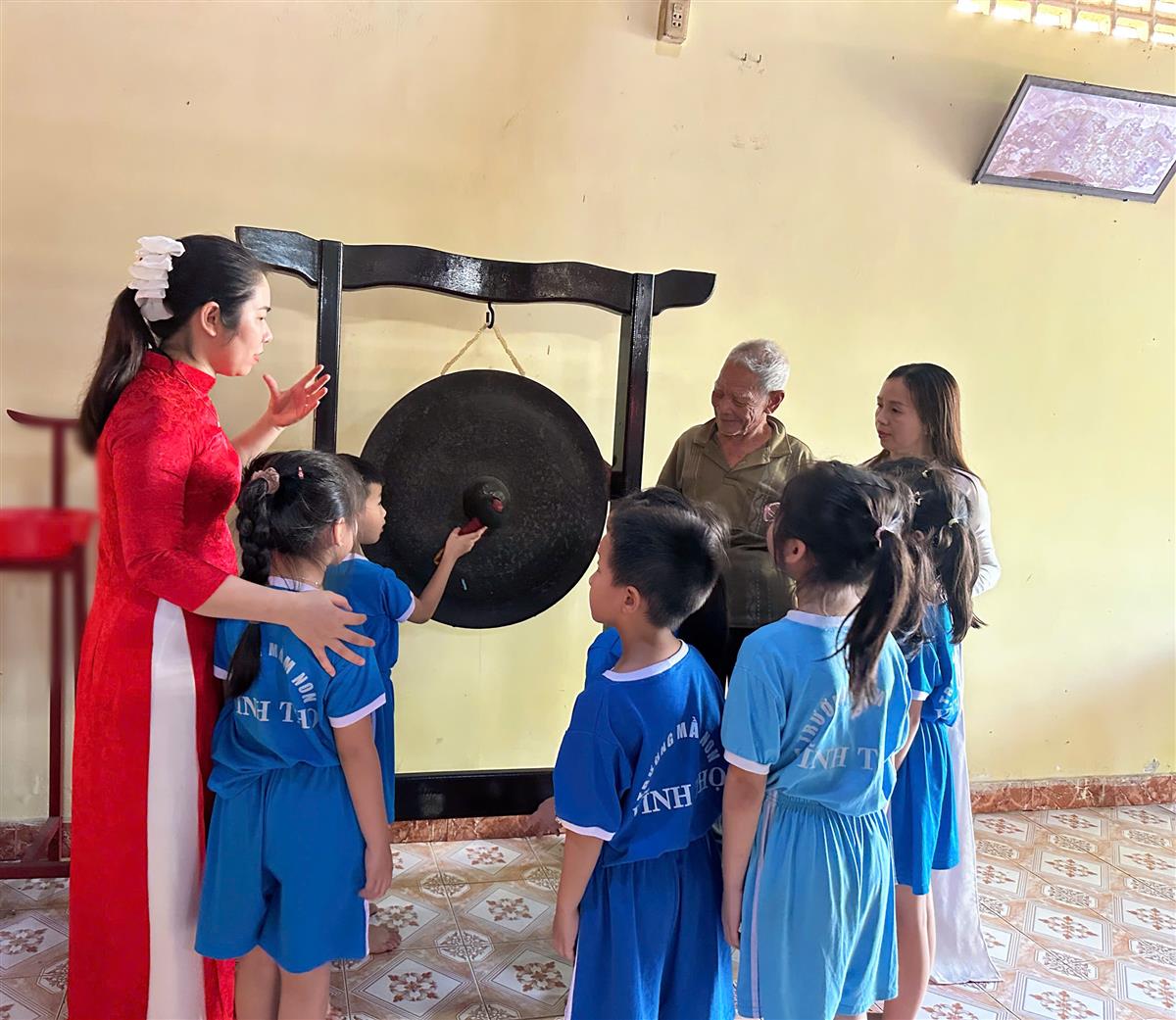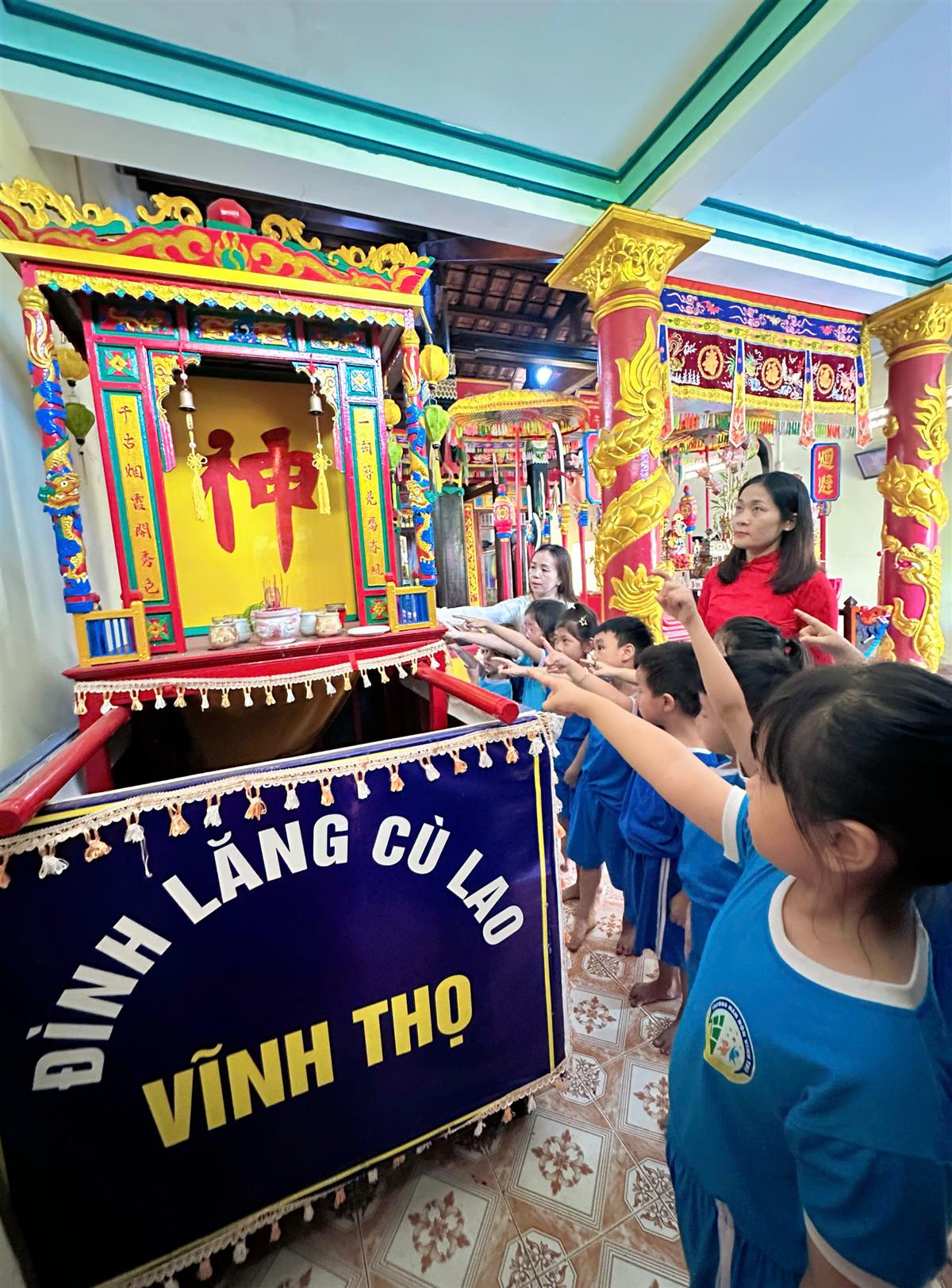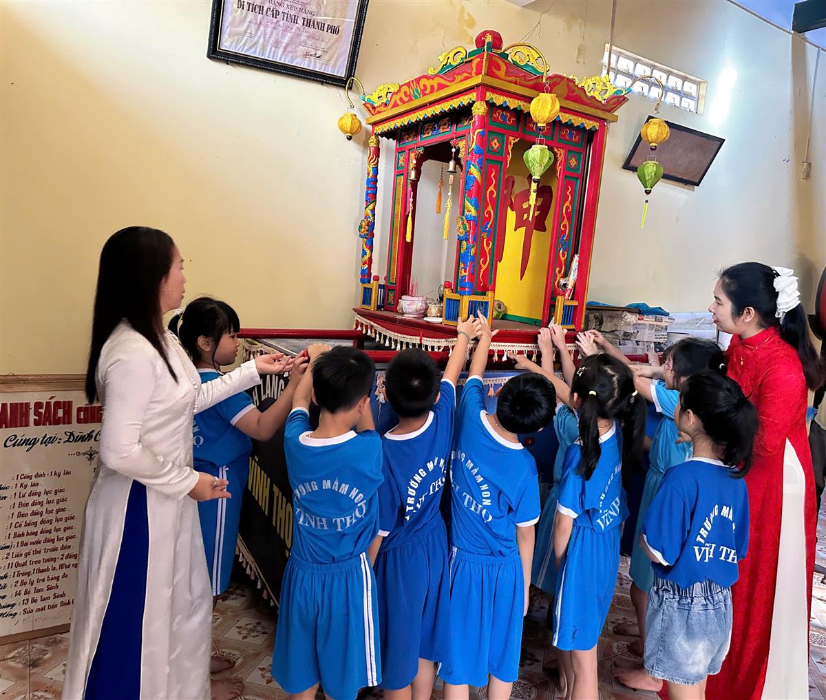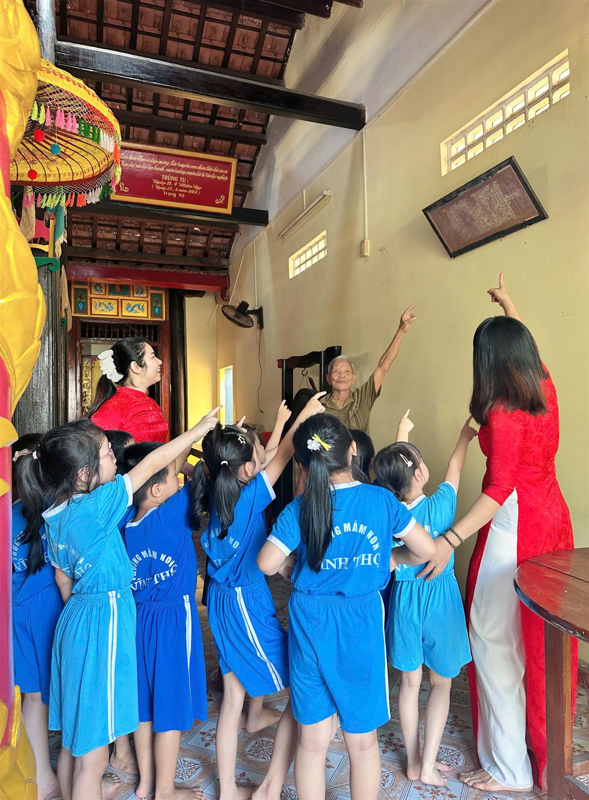 Tại đình, trẻ được cô giới thiệu một cách nhẹ nhàng, dễ hiểu về ý nghĩa của di tích – nơi ghi dấu những giá trị lịch sử và văn hóa của địa phương. Các bé còn được biết rằng hằng năm, vào ngày 16 tháng 8 âm lịch, nơi đây thường diễn ra lễ hội truyền thống, thu hút đông đảo người dân đến tham gia để tưởng nhớ công lao của các bậc tiền nhân.
